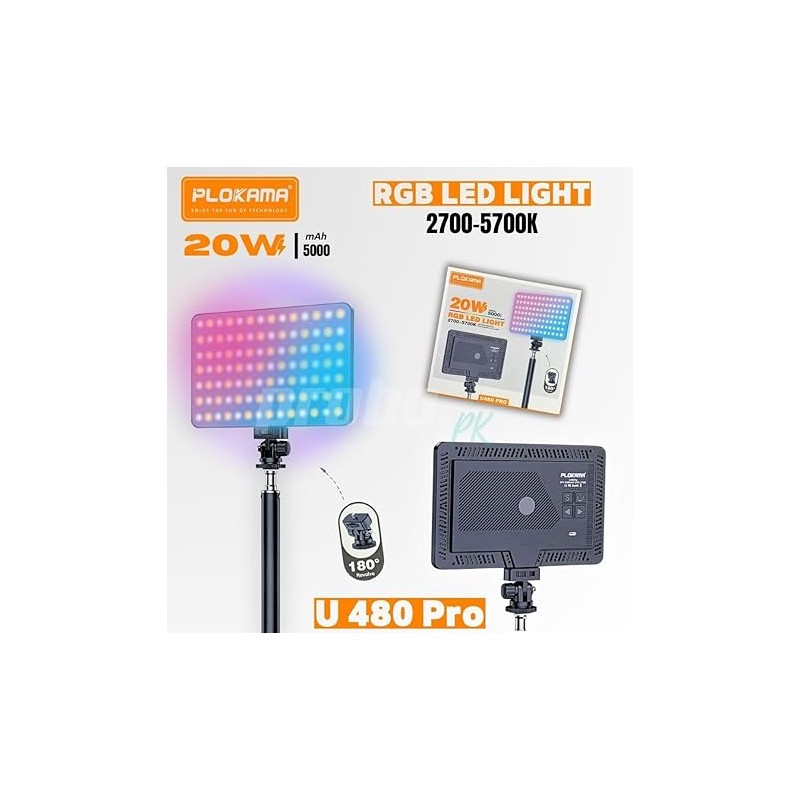 Το επαναφορτιζόμενο φωτιστικό PLOKAMA U480 PRO RGB LED είναι ο απόλυτος σύντροφός σας για επαγγελματική φωτογραφία, προσφέροντας ευέλικτες λύσεις φωτισμού για να ενισχύσετε τη δημιουργικότητά σας.